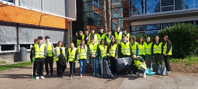 Foto von Privat: Die Klasse 9d des Helfenstein-Gymnasiums beteiligte sich mit großem Engagement an der Putzaktion